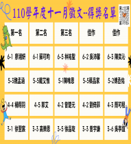 開啟上方區塊 榮譽事項:桃園市楊心國小全球資訊網-優質校園 返回榮譽首頁 熱門榮譽 請選擇榮譽事項 模範表揚服務志工語文認證語文競賽閱讀認證生活競賽教師獲獎拾物不昧熱心公益品格之星每月徵文全縣評鑑其它表現體育競賽資訊競賽藝文競賽科學競賽學科競賽 請選擇發佈單位 學務處幼兒園家長會會計室人事室輔導室總務處教務處訓導處 110學年度十二月謙恭品格之星 年級班級品格之星班級師生推薦之原因一一游書妍說話實在、謙虛。心存感謝,虛心受教。一二李承祐待人真誠,和善,對師長及同儕真誠以對。一三張家凱同學指正其態度會立即改進。一四林思言對老師的指正都能改正,而且表現很好也不會覺得自己都很棒,不驕傲。一五魏偲芩很會做事且不驕傲。二一劉秋姍有人指正時,會虛心接受,並改正。二二鍾羽晴時常和師長及同學表達感謝。二三余柏佑面對同學和師長的肯定,不驕傲、不搶功勞。二四蔡宇芯考一百分,不會炫耀。二五陳芊羽說話不誇大,能接受別人的批評。三一張紫褕表現好的時候,不驕傲。三二黃勤中說話內歛、待人有禮。三三劉靚緹受到讚美時,不驕傲,會更加努力。三四張紜甄面對師長、同學的讚賞會客氣的道謝,對於自己的缺點會虛心改進。三五黃泓璋能改進上課說話的壞習慣,勇於認錯。三六高敏傑謙虛接受讚美,且被糾正時也虛心接受,努力改進。四一楊哲榛會努力改進缺點。四二陳有瑝受到讚美時,不驕傲。四三歐倢瑀謙虛有禮,對同學和善。四四楊翔羽被指正錯誤會虛心接受,待人和氣。四五施沛緣事情做得好,不驕傲。四六丁勻佑當有人指正過錯時,能心存感謝且虛心接受。五一陳紅瑾當別人做錯時,會和氣的給他建議。能改進缺點,讓自己更棒。五二傅丞佑獲得勝利時,不會嘲笑別人。輸了也不放棄。五三古丞皓表現優異,不會自滿,很謙虛,會熱心教同學,待人客氣有禮貌。五四彭湘婷不因某方面的結果而否定他人。五五鍾秉諴待人和氣,表現良好不驕傲。六一呂宣揚有人指正時,會虛心接受。六二鍾昌澔表現優異,不會自滿,很謙虛。六三曾家芸勇敢且努力改進缺點,讓自己變得更棒。六四許承婕受到別人稱讚時,會說謝謝且繼續努力。尊動師長,待同學和善。六五李妙緣不因獲勝而嘲笑別人,不會反駁別人講的事。 詳全文 榮譽事項:品格之星 發佈單位:學務處 建立時間:2022-01-07 瀏覽次數:602 榮譽發表者:floria 110學年度十二月閱讀認證通過名單 小博士小碩士小學士一年一班謝紫琦一年一班林芷晴一年一班藍赫逸一年一班游書妍一年一班徐梓喬一年一班黃以婕二年三班廖芷璇一年一班游書妍一年一班張芷庭二年三班徐珮慈二年二班張博鈞一年一班彭芷緹二年三班羅芝栩二年二班廖沛晨一年五班張丞廷二年三班蔡沅修二年二班范真瑄一年五班周芸均二年五班林宥辰二年三班徐珮慈一年五班林毓恩二年五班柯世祐二年三班張紜瑄一年五班林曉亞二年三班羅芝栩二年二班葉品言二年三班蔡沅修二年二班張博鈞二年三班戴睿穎二年二班古宛宜二年三班羅媗妤二年三班江語菲二年五班柯世祐二年三班林鑫靈四年四班楊翔羽二年三班蔡沅修二年三班戴睿穎二年三班廖芷璇二年五班劉祐君二年五班郭芮妡二年五班陳芊羽二年五班邱伃妤二年五班溫妤葳二年五班彭元楷二年五班黃祈碩二年五班呂佩蓉二年四班蔡宇芯四年一班王梓璇四年四班黃頤岑 詳全文 榮譽事項:閱讀認證 發佈單位:教務處 建立時間:2021-12-30 瀏覽次數:799 榮譽發表者:english 110校內語文競賽成績 110校內語文競賽得獎名單類別名次姓名二年級國語說故事第一名201鐘旖萱第二名205詹子楹第三名204汪鐿庭三年級國語說故事第一名301李珮慈第二名306何鳳儀第三名305彭承駿類別名次姓名四年級客語演說第一名401彭品妍第二名406徐喬薇第三名405曾宇廷五年級客語演說第一名501邱紫云第二名502黃葦桐第三名503魏孟涵類別名次姓名四年級國語演說第一名401葉芯羽第二名405石宸熏第三名402劉倚菲五年級國語演說第一名502吳文翔第二名501彭頌硯第三名503高瑋彤類別名次姓名四年級閩語演說第一名401陳韻圓第二名402許妍溱第三名405吳侑霖五年級閩語演說第三名502李怡潔類別名次姓名四年級客語朗讀第一名402李郡哲第二名405廖沛涵第三名403林玉明五年級客語朗讀第一名502劉得恩第二名503楊文承第三名501黃暐峯類別名次姓名四年級國語朗讀第一名401謝凱丞第二名405馮玟婕第三名406劉又嘉五年級國語朗讀第一名501詹蕎瑊第二名503徐啟翔第三名505曾以晴類別名次姓名四年級閩語朗讀第一名405郭艾第二名402許妍溱第三名406丁勻佑五年級閩語朗讀第一名503林宜蓁第二名502涂芷綾第三名505王軍皓類別名次姓名寫字(書法)佳作405張智傑佳作502胡善鈴類別名次姓名四年級作文第一名406廖珮珊第二名405蔡齊恩第三名404蔡芷妍五年級作文第一名503魏孟涵第二名505鍾秉諴第三名504詹盈楹類別名次姓名四年級字音字形第一名403簡可程第二名406李禹靚第三名401蔡閔琁五年級字音字形第一名502古佳惠第二名503林宜蓁第三名505羅育楷類別名次姓名五年級英語說故事第一名501胡鳳德第二名502周成翰第三名503孫禹涵六年級英語說故事第一名602李承職第二名601呂宣揚第三名603黃晨硯類別名次姓名三年級英語朗讀第一名306徐楷晴第二名303魏定謙第三名304涂芷蜜四年級英語