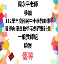 狂賀本校周永平老師參加112學年度國民中小學教師素養導向優良教學示例評選計畫(一般教師組)榮獲優等