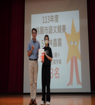 開啟上方區塊 榮譽事項:桃園市楊心國小全球資訊網-桃園市 返回榮譽首頁 熱門榮譽 請選擇榮譽事項 模範表揚服務志工語文認證語文競賽閱讀認證生活競賽教師獲獎拾物不昧熱心公益品格之星每月徵文全縣評鑑其它表現體育競賽資訊競賽藝文競賽科學競賽學科競賽 請選擇發佈單位 學務處幼兒園家長會會計室人事室輔導室總務處教務處訓導處 113學年度楊心國小語文競賽英語說故事前三名 桃園市楊梅區楊心國小語文競賽【英語說故事】班級姓名名次6-6吳晨妤16-1徐楷晴26-5涂絃眉35-2呂佩蓉15-3王昱甯15-4陳芊羽2 詳全文 榮譽事項:語文競賽 發佈單位:教務處 建立時間:2024-11-08 瀏覽次數:361 榮譽發表者:joyful 113學年度楊心國小語文競賽英語朗讀前三名 桃園市楊梅區楊心國小語文競賽【英語朗讀】前三名組別班級姓名名次三年級組3-4鄒舒聿13-3羅迎睿23-2李欣霈3四年級組4-4鄭忠晟14-3姜欣妤24-5呂毅晴3 詳全文 榮譽事項:語文競賽 發佈單位:教務處 建立時間:2024-11-06 瀏覽次數:331 榮譽發表者:joyful 113學年度十月合作品格之星 楊心國小113學年度十月合作品格之星年級班級品格之星班級師生推薦之原因一一湯宥芸主動幫助同學,能了解團結合作的重要。一二林琮軒跟同學、師長合作順利。一三張芷昀能和同學共同完成一件事,也能聽別人的意見。一四姜絜晞會在打掃時間與同學合作一起工作。一五黃語蕎能和同學合作完成事情。二一劉芝妘會主動幫助同學,互助合作。二二吳佩霓和同學常合作完成學習事務。二三吳采潔會與同學一起合作打掃。二四周子為小組討論時,能認真聆聽別人意見,共同完成一件事。二五張佑聖會和同學合作完成外掃區的整潔工作。三一徐巧庭會和同學共同完成一件工作。三二邱昌威時常協助班級事務,熱心幫忙同學。三三吳沛霖有耐心跟同學討論。三四徐名緯會協助小組同學完成任務,爭取小組榮譽。三五徐彥語小組討論時,會和組員互助,統整大家意見。四一姜柏誌能與同儕溝通、協調。能參考別人的意見。四二夏家畯在小組中善於溝通、協調。能尊重、整合意見,和別人一起完成工作,發揮最大團體效益。四三姜欣妤會互助合作,也很禮貌。四四林峻麒能了解團結合作的意義。貢獻自己的專長。四五彭馨會參考別人的意見,能與同學溝通。五一張筱卿小組討論時,會分工合作。在團體中,會負責任並鼓勵他人。五二呂佩蓉主動教同學功課。五三林鑫靈能和組員合作,能協助同學。五四陳芊羽在電腦課會不吝嗇跟同學分享怎麼要做更好。五五鄧寧靚會尊重每個人的想法,了解團結合作的意義。六一何鳳儀會參考別人的意見,能和同學一同完成一件事。六二陳俞瑄能和同學一同完成一件事。六三葉閔慧討論時積極發言,主動一起討論。六四鍾育璿與小組同學合作討論,積極參與討論。六五魏定謙小組討論時,會和大家分工討論重點。六六彭筠恬會參考別人的意見,有耐心的與人合作,尊重別人的想法。 詳全文 榮譽事項:品格之星 發佈單位:學務處 建立時間:2024-11-05 瀏覽次數:230 榮譽發表者:floria 桃園市113語文競賽市決賽 林鑫靈同學榮獲桃園市語文競賽寫字組第三名 詳全文 榮譽事項:語文競賽 發佈單位:教務處 建立時間:2024-10-18 瀏覽次數:303 榮譽發表者:joyful 楊心國小113學年學生資訊教育競賽成績 楊心國小113學年學生資訊教育競賽成績簡報製作組專題寫作組(六年級組)專題寫作組(五年級組)特優班級姓名特優班級姓名特優班級姓名特優602高里育特優602高里育特優505陳婕縈優等603葉閔慧優等606劉靚緹優等502鐘旖萱優等606周恩宇優等601黃庭語優等502郭芮妡佳作601何鳳儀佳作605舒奕晴 佳作602張紜甄佳作606吳晨妤 佳作603周恩希 楊心國小113學年Scratch競賽成績遊戲組動畫組名次班級姓名名次班級姓名特優606周恩宇特優605盧貞羽優等606施豫廷優等601何鳳儀優等606鄭詠心優等606劉靚緹佳作602高里育佳作605徐右秦佳作603朱雅妍 佳作602羅妍睎恭喜以上獲獎同學! 詳全文 榮譽事項:資訊競賽 發佈單位:教務處 建立時間:2024-10-14 瀏覽次數:304 榮譽發表者:ian 113學年度上學期 9月份每月徵文 詳全文 榮譽事項:每月徵文 發佈單位:教務處 建立時間:2024-10-07 瀏覽次數:293 榮譽發表者:mona 113學年度九月禮節品格之星 楊心國小113學年度九月禮節品格之星年級班級品格之星班級師生推薦之原因一一陳樂妗上課專心有禮貌,表現真棒。一二黎恩彤每天向師長問好。一三張芷昀上課專心聽講,在班上遵守約定。一四周佩諭尊重師長有禮貌,主動問早。一五高語芯接受別人的幫助時,會有禮貌。常說謝謝。二一金妘羲會主動說請、謝謝、對不起,並表達關心。二二賴玦墉與人相處有禮貌。二三范姜相宇對師長有禮貌,與同學相處會說請、謝謝、對不起。二四溫禹樂會主動和人打招呼,對長輩的問話都會認真回應。二五張莉妮批改作業後會主動向老師說謝謝。三一吳宜蓉與人說話輕聲細語,對街同學、老師師有禮貌。三二李宥序待人常說謝謝,說話輕聲細語。三三鄧米媞說話有禮貌、溫柔,關心別人。三四張語心會跟大家問好,常說謝謝。三五許安妤會主動和人打招呼,對同學說話溫柔,尊重人。四一朱俊炫主動和他人打招呼。與同學互動良好不大聲喧嘩。四二張丞廷會主動打招呼、問好,遵守課室禮儀。四三陳科綸進教室都會大聲問早,常說謝謝。四四鄭